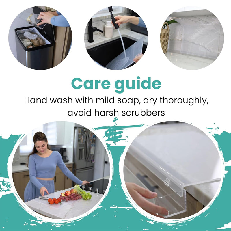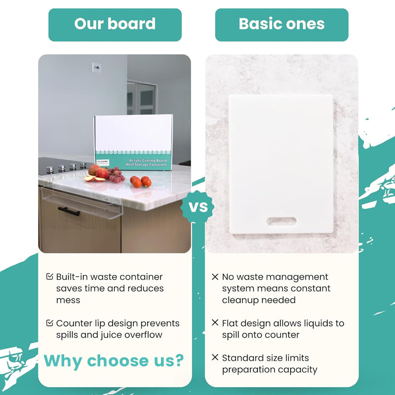 The kitchen also needs smart design! This acrylic cutting board is not only sturdy and durable, but also has a countertop edge design and a side residue storage slot, making you neater, less cleanup, and zero worries when preparing food!